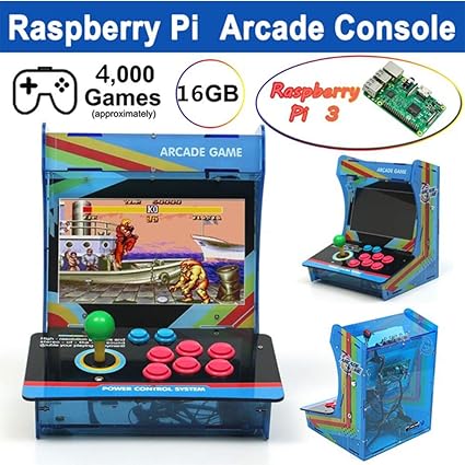 Amazon Com Retro Mini Arcade Machine With 4000 Classic Video Games 1 Player Raspberry Pi Plug And Play Game Cabinet Console With 10 Screen Blue Computers Accessories