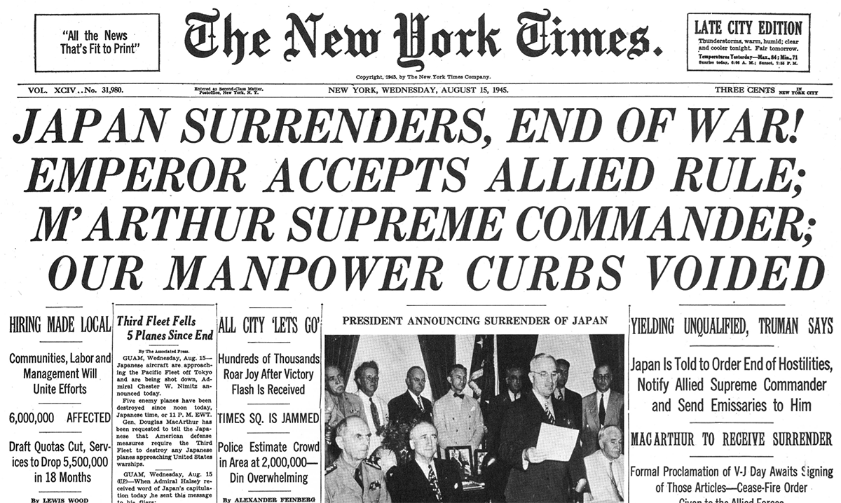 Nyt Archives On Twitter Japan Surrenders End Of War The Times Announced That On This Day In 1945 Japan Surrendered In World War Ii Https T Co Tx2bgwjovw Https T Co Vu4qv1avd8