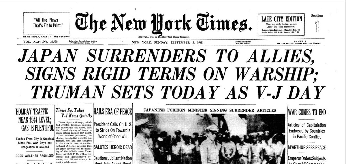 New York Times Otd On Twitter Otd September 2nd 1945 Japan Surrenders Truman Sets Today As V J Day Nytimes Ww2 Http T Co 7bowemaxmz