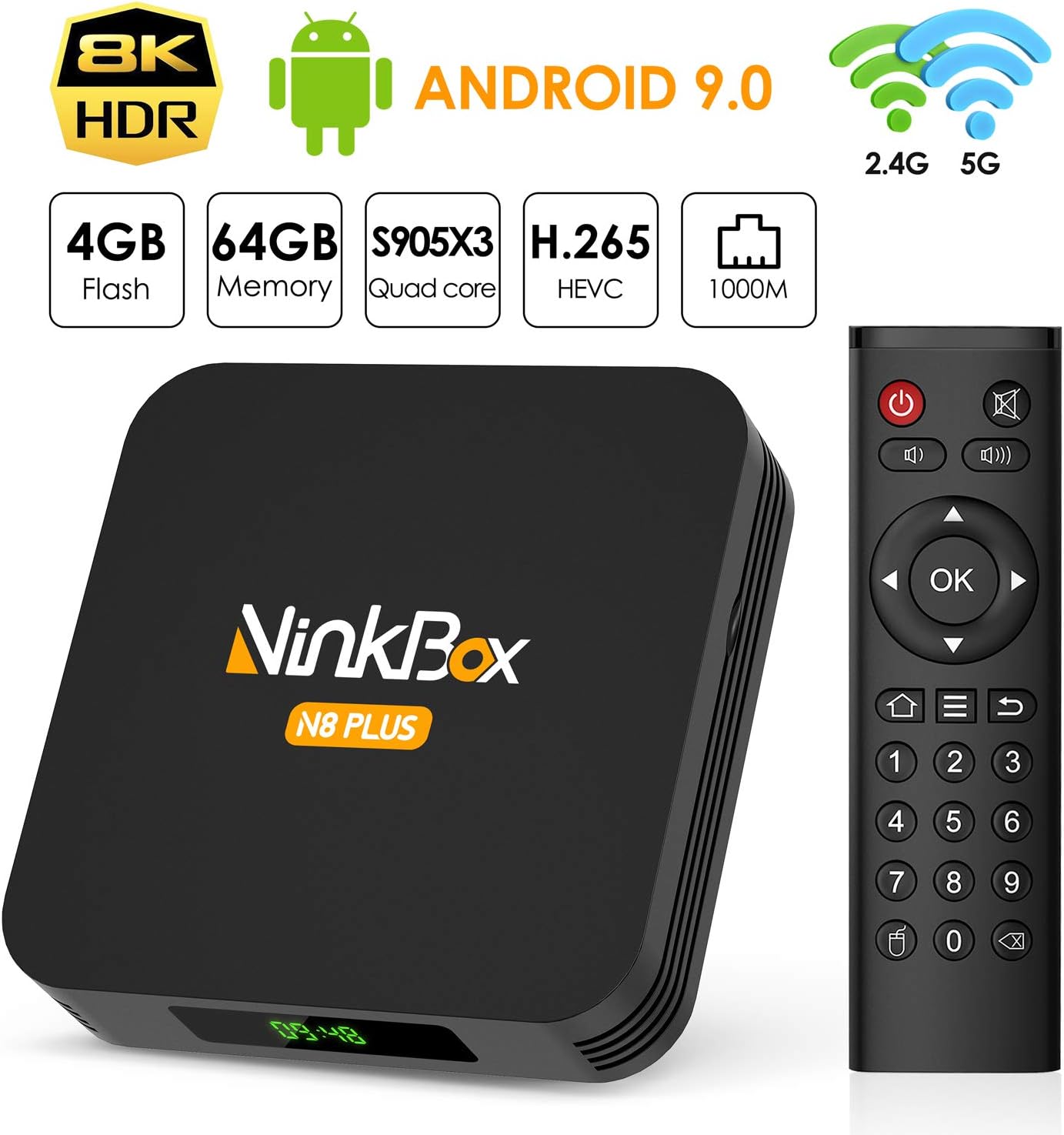 Android 9 0 Tv Box 4gb Ram 64gb Rom Ninkbox N8 Plus Tv Box Android Amlogic S905x3 Quad Core 64bit Cortex A55 Dual Wifi 2 4ghz 5ghz 3d Ultra Hd 8k H 265 Usb 3 0 Bt 4 0 Smart Tv
