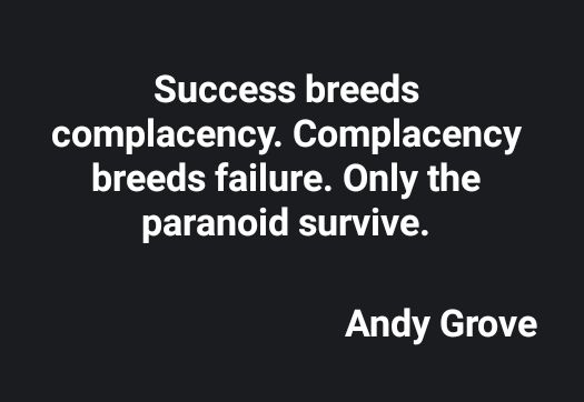 Success Breeds Complacency Complacency Breeds Failure Only The Paranoid Survive Andy Grove Quotes