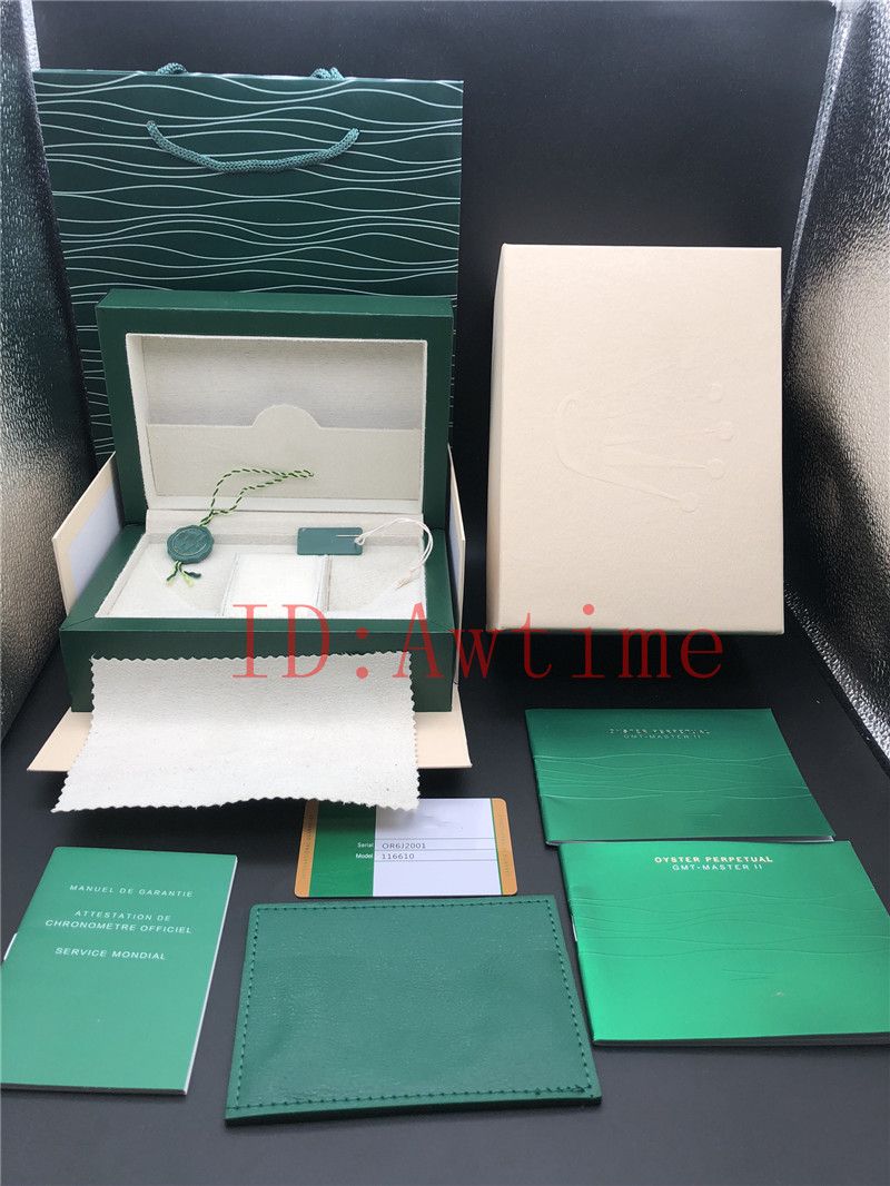 Top Luxury Watch Brand Green Original Box Gmt Papers Mens Gift Watches Boxes Leather Bag Green Tags Card For 116610 126710 Rolex Watch Box Wooden Watch Box Watch Travel Case From Awtime