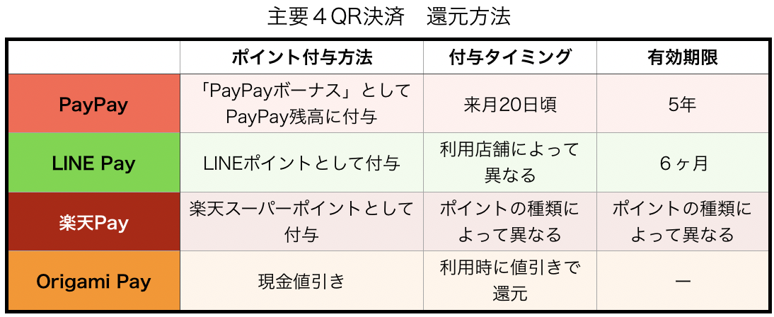 Paypay Linepay 楽天pay Origamipay 主要qr決済 を徹底比較 Money Life アトフジ