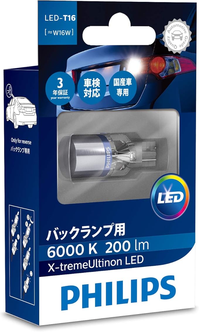 Amazon フィリップス バックランプ Led T16 6000k 200lm 12v 3 4w エクストリームアルティノン 車検対応 3年保証 1個入り Philips X Tremeultinon 12832x1 ブレーキ テールランプ 車 バイク