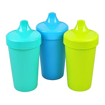 Amazon Com Re Play Made In Usa 3pk No Spill Sippy Cups For Baby Toddler And Child Feeding In Sky Blue Lime Green And Aqua Made From Eco Friendly Recycled Milk Jugs