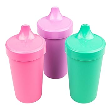 Amazon Com Re Play Made In The Usa 3pk No Spill Sippy Cups For Baby Toddler And Child Feeding Bright Pink Purple Aqua Sparkle Baby