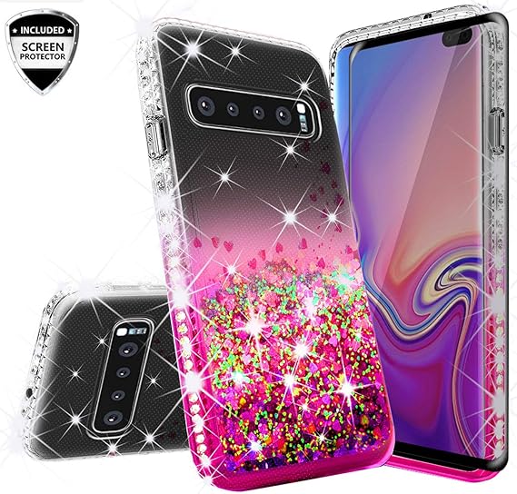 Amazon Com Galaxy S10 Plus Case Liquid Glitter W Tpu Screen Protector Shock Proof Quicksand Bling Cute Girl Women Cover Compatible For Samsung Galaxy S10 Plus S10 Phone Case Hot Pink Clear