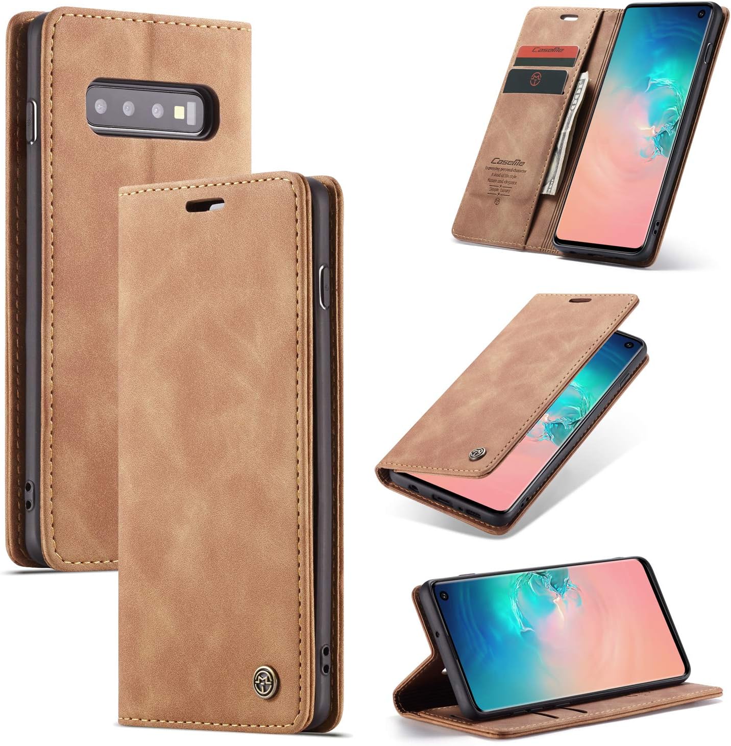 Caseme Samsung Galaxy S10 Magnetic Flip Leather Wallet Case Brown