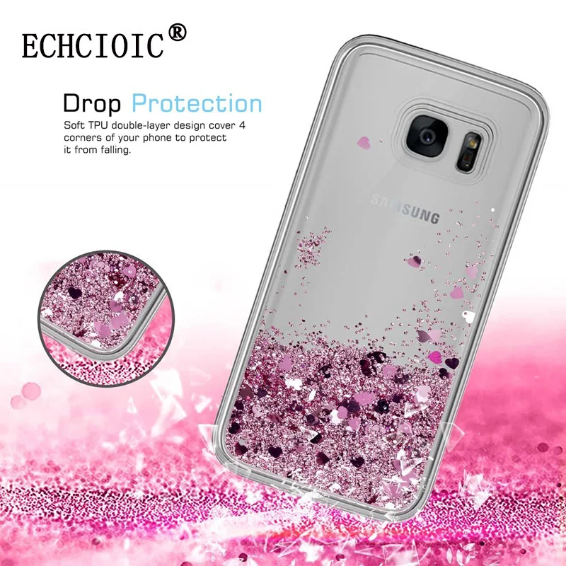 For Samsung Galaxy S7 Edge Liquid Glitter Sparkle Quicksand Bling Case Girls Women Cute Clear Soft Tpu Silicone Back Cover Fitted Cases Aliexpress