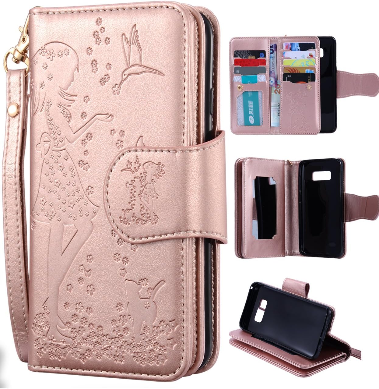 Amazon Com Samsung S8 Case Galaxy S8 Wallet Case Flyee 9 Card Slot Pu Leather Magnetic Protective Cover With Mirror And Detachable Wrist Strap For Samsung Galaxy S8 5 8 Inch Rose Gold Electronics