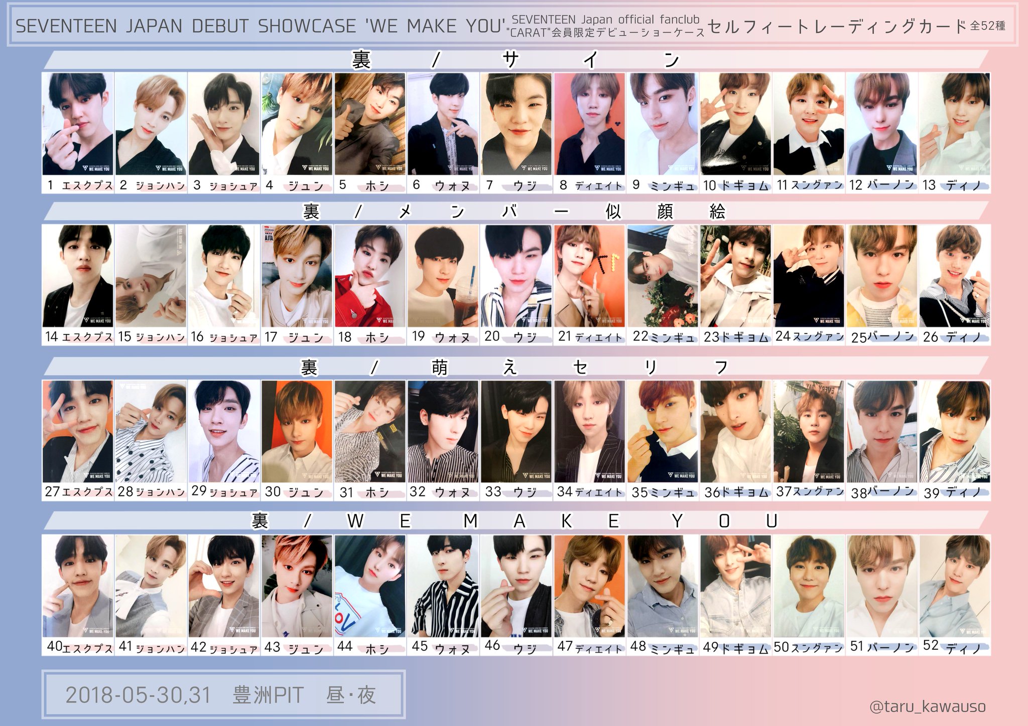 たる En Twitter Seventeen We Make You セブチ デビューショーケースのトレカ一覧です 交換の際などご自由にご使用ください